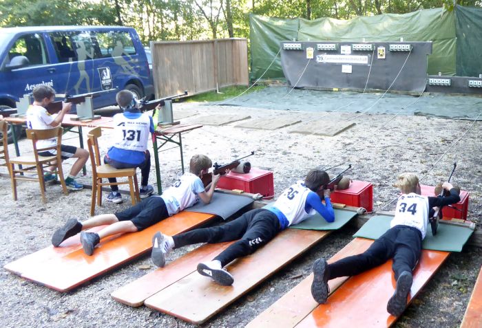 Schüler beim Liegend- sowie Sitzendaufgelegt-Schießen |